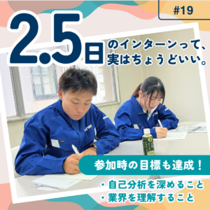 19回目のコラムは、9月に実施した三好鉄工所の短期インターンシップ。自己分析に特化したプログラムです。