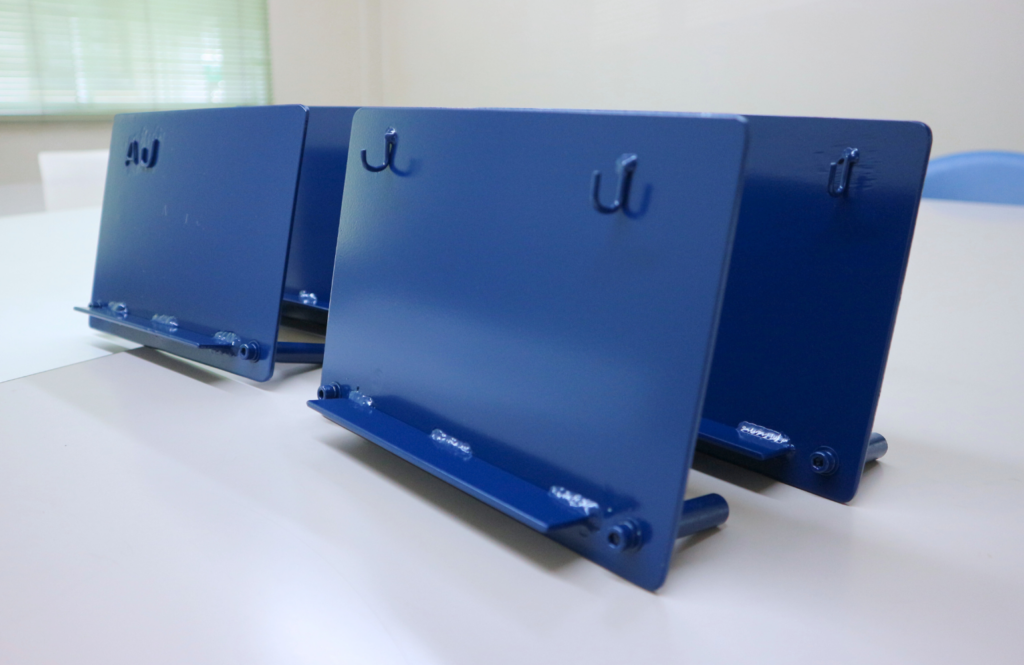完成品はミヨシカラーで焼き付け塗装し、加工の仕上がりを後日学校へお届けします。