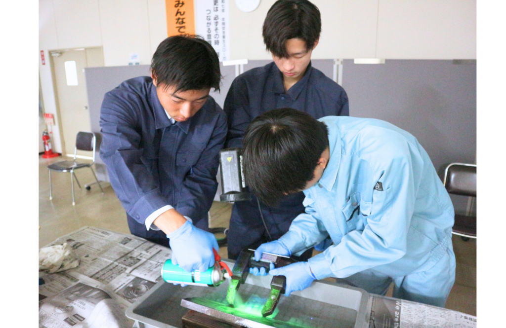 品質保証部で非破壊検査を体験し、製造部では溶接・溶断の基礎練習に挑戦。